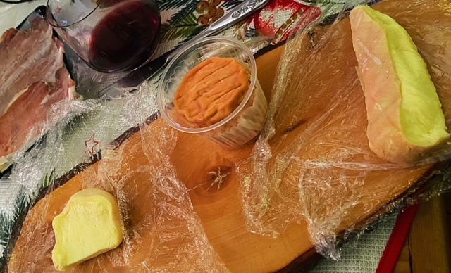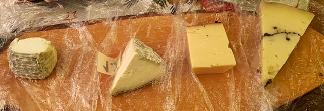 Omdat een groot afscheid niet kon, besloten die collega en ik samen wat te gaan eten. Hoe konden we de dag beter afsluiten dan met kaas en wijn? Ja, dat klopt. Kaas for dinner. Denk je kaas, dan denk je Fromagerie Bon. De vorige keer hebben we daar een 3-gangen proeverij gedaan. Dan waan je je overigens in Frankrijk. De geur van kaas en gedroogd vlees komt je tegemoet. Kleine ronde tafeltjes, houten klapstoeltjes, louvredeurtjes tegen de muur en Franse muziek maken het decor. Dan heb ik nog niet eens genoemd dat je bij elke gang ook een passend glas wijn krijgt. Daar genieten kon jammer genoeg niet, maar wel konden we een thuisproeverij kopen. We hadden er zin in (verkondigden al weken dat we dit zouden doen) en kozen voor 4-gangen inclusief vleeswaren. Je krijgt vier kazen per gang en bij een combinatie met charcuterie wordt een kaas per gang vervangen door vleeswaren. Twaalf stukken kaas? Ja.. we hadden toch iets te vieren? Gang 1 bestond uit geit, schaap en witschimmelkazen, gang 2 (half) harde kazen, gang 3 roodflorakazen en gang 4 blauwader. Vol goede moed gingen we van start, maar na gang twee kregen we het al aardig zwaar. Typisch gevalletje van hoogmoed.. Anyway, meer kaas voor de volgende dag toch? Later heb ik eenzelfde proeverij besteld voor kerstavond. Ik zal het maar niet hebben over de ellelange rij, de vrieskou, de regen, het missen van de bus en alle ellende die daaraan vooraf ging… Ik neem je mee naar de kaasjes uit de verschillende gangen. Want wat kun je nou verwachten van zo’n proeverij?