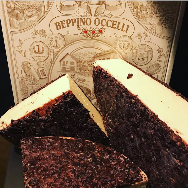 In de eerste gang (op foto 1 en 2 de eerste twee kaasjes) zat dit keer een frisse geitenkaas uit de Loire met structuren uiteenlopend van krijtachtig naar romig; een romige en ziltige geitenkaas omdat de geitjes grazen op een eilandje aan de Franse kust; een schapenkaas (voor de getraumatiseerden: Nee dit lijkt niet op je eerdere ervaring. Er is zoveel meer dan manchego) die erg smeuïg en romig is en tot slot een witschimmel, rauwmelkse koekaas, uit de Champagne-regio die in zout water is gewassen. Zowel bij de gangen zelf, als binnen elke gang worden de kaasjes opgebouwd van mild naar wat intensere smaken. Gang twee (kaasje drie en vier van foto 1 en 2) heeft mij toch wel het meest verrast. We startten weer met een geitenkaas, ietsje voller dan die hiervoor. Deze keer een Nederlandse kaas, maar gerijpt in de grotten van Frankrijk. Daarna een Italiaanse kaas, voor 80% koemelk en 20% geitenmelk, gewassen in wijn. Ja! WIJN! Vervolgens is ie ingelegd in rode druiven. Deze zitten ook nog over de korst heen. Deze kaas is wat harder en je proeft de subtiele rode wijnsmaak met vleugen door de kaas heen. Vervolgens was er een kaas uit Winsconsin, een combi van cheddar en parmezaan, gewassen in zoete espresso en gerijpt in gemalen koffiebonen. Dit is echt een van mijn favorieten. Je proeft de rijke smaak van cheddar, het zoute van de parmezaan en vervolgens het zoete van de espresso. Gang twee sloten we af met een variant op de pecorino. Deze schapenkaas is geïnjecteerd met zwarte truffel. De smaak is mild, maar tegelijkertijd intens en pittig. Een goede afsluiter voor deze gang en prima start voor de derde gang. De, tsja, stinkkazen. De eerste is een Nederlandse versie op de Taleggio. Heel aards, vol, romig en zalvig. Vervolgens een kaas uit het noorden van Frankrijk, opnieuw, gewassen in zout water. De geur is scherp en zo ook de smaak. Dit is nou zo’n kaas waar je aan denkt bij het concept: kaas en wijn. Ik kan hier wel van genieten. We gaan door met een kaasje, lijkend op een schattige muffin, een minivariant van de Epoisses. Het karakter van deze kaas is alleen niet zo schattig. Dit is dus een gevalletje “hij smaakt anders dan ie ruikt”. Ik krijg dat er bij sommigen maar moeilijk in, maar het is echt zo! Dit kleine kaasje heeft zoveel smaak in zich. Hij is gewassen in Marc de Bourgogne, een sterk destillaat, gemaakt van de pitten en druiven die na de persing van de wijn overblijven. De laatste kaas in deze gang, baas boven baas, is de Munster. Ik denk dat ik daar verder niets over hoef te zeggen.