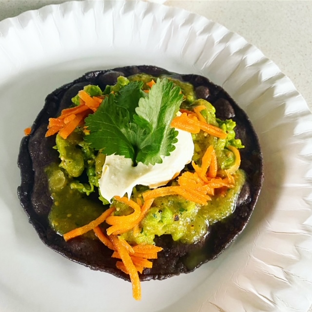 Tostada | Doperwten | Wortel | Groene Salsa | Room