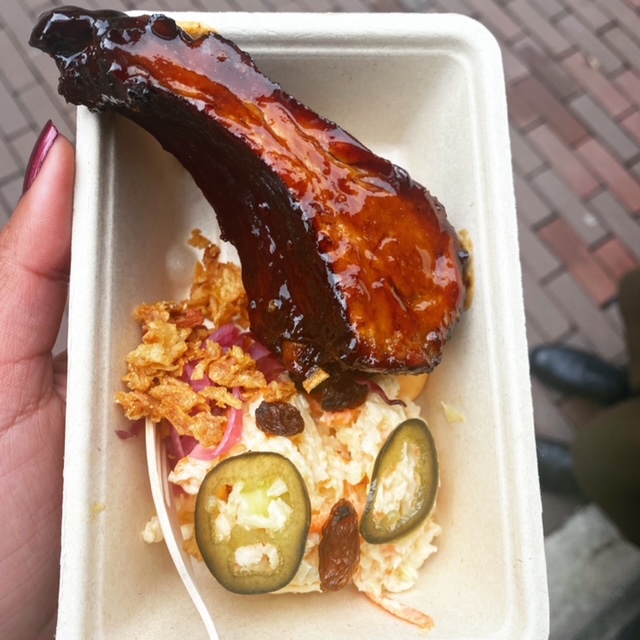 Samen met een vriendin, die ik al ruim acht maanden niet had gezien, ging ik dit in Amsterdam doen. We wonen niet bij elkaar in de buurt en normaal gesproken spraken we af in Utrecht of Amsterdam. Nu hebben we dat steeds uitgesteld en persconferentie na persconferentie afgewacht in de hoop dat er wat meer kon. Toen dat niet echt perspectief bood besloten we de winter uit te zitten (want, te koud) en eind maart af te spreken. De wandeling gaat langs vijf restaurants door heel Amsterdam, waar je op willekeurige volgorde langsgaat. Ik ga van restaurant ACE via In de Waag, Pikoteo en Boca’s naar Bar Pif. Van dit lijstje heb ik alleen eerder bij In de Waag gegeten, dus ik ben benieuwd! De zon schijnt en we beginnen onze wandeling. Bij ACE kreeg ik spareribs gelakt met Jack Daniels en cola en een salade on de side. Alleen de geur al liet een aantal voorbijlopende mensen stoppen en vragen wat ik toch in mijn handen had. De smaak deed niet onder. Wat was dit een goede eerste gang. Het vlees was sticky, juicy en supermals. Met elk hapje kwam er een vleugje cola en jack voorbij. Doe mij nog maar zo’n bakje, of twee.